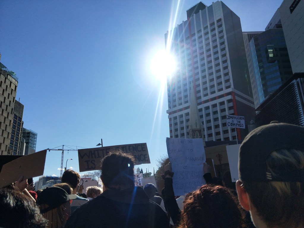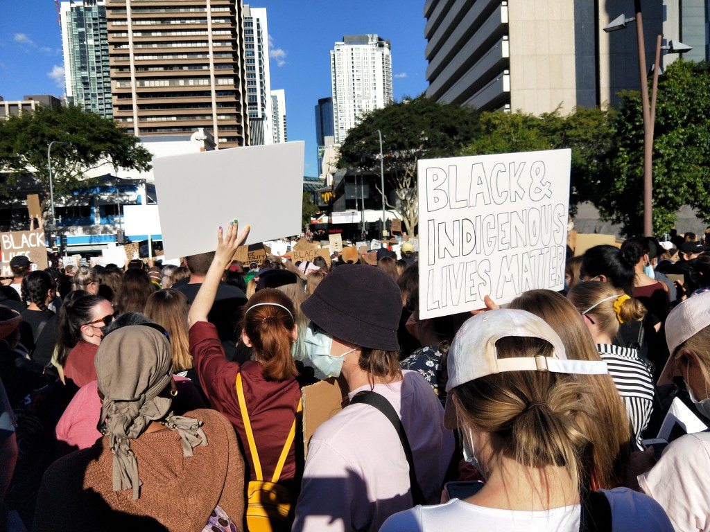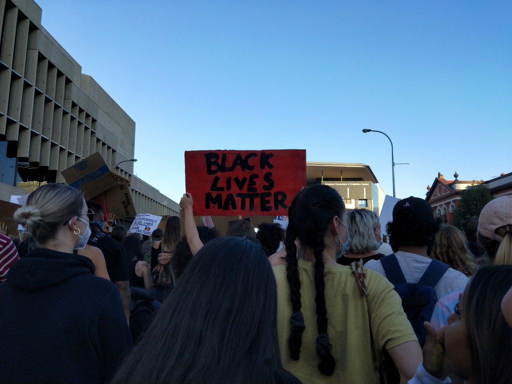 Before I talk about the protest I want to quickly address my disgust for people who discouraged the protest, who called those who attended ‘idiots’, who claimed that it’s a “US issue” and that one shameful person who said the protests were ‘self-indulgent’. It just shows how racist and two-faced the general Australian population is when they’re okay with people protesting the restrictions of Covid19, when they’re okay with them protesting conspiracies, when they’re okay with people protesting vaccines, and yet they’re not okay with people protesting systematic racism that results in the oppression and deaths of First Nations People. The level of ignorance displayed just reminds me how uneducated this country is. You want to protest the restrictions of the pandemic and vaccines? And then say that protesting Aboriginal Deaths in Custody is going to be the reason for the next wave of Covid19? Really? If you disagree with me, go back and read that sentence again. RESTRICTIONS and VACCINES are allowed to be protested in this time of PANDEMIC, and somehow that’s part of human rights and protesting the systematic MURDER of People of Colour ISN’T?